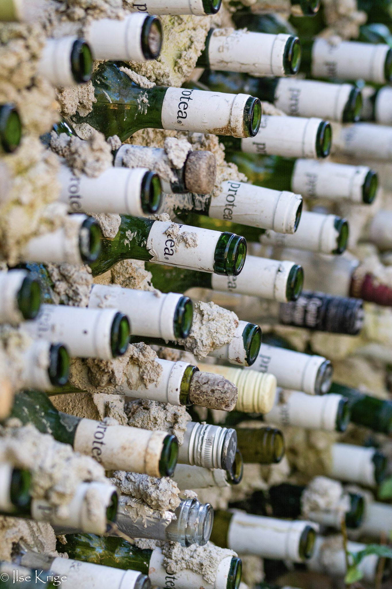 The self catering kitchen is made with reclaimed windows, and over 15 000 bottletops laid into the floor!